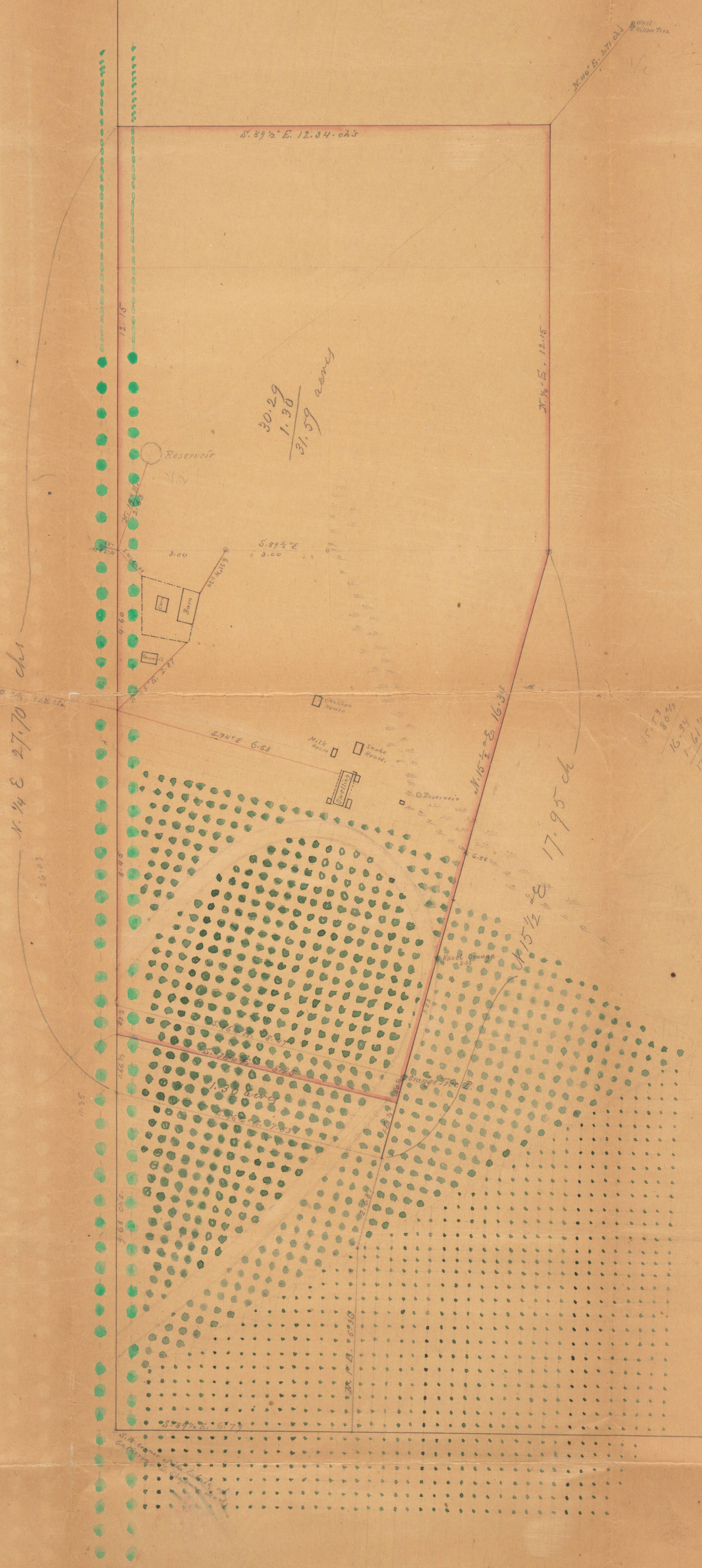 Using modern landmarks, the main dwelling's entry from the road (Rosemead Blvd.) was in the area of Locksley Dr., approximately following the first curve in Locksley and then continuing straight to the dwelling, which was in the area of 741 Michigan and faced northwest. A smoke house, milk house and chicken house were located just north of the dwelling; a barn, corral & servants quarters were located in the area of 664 Rosemead.